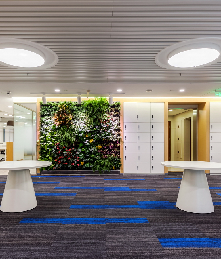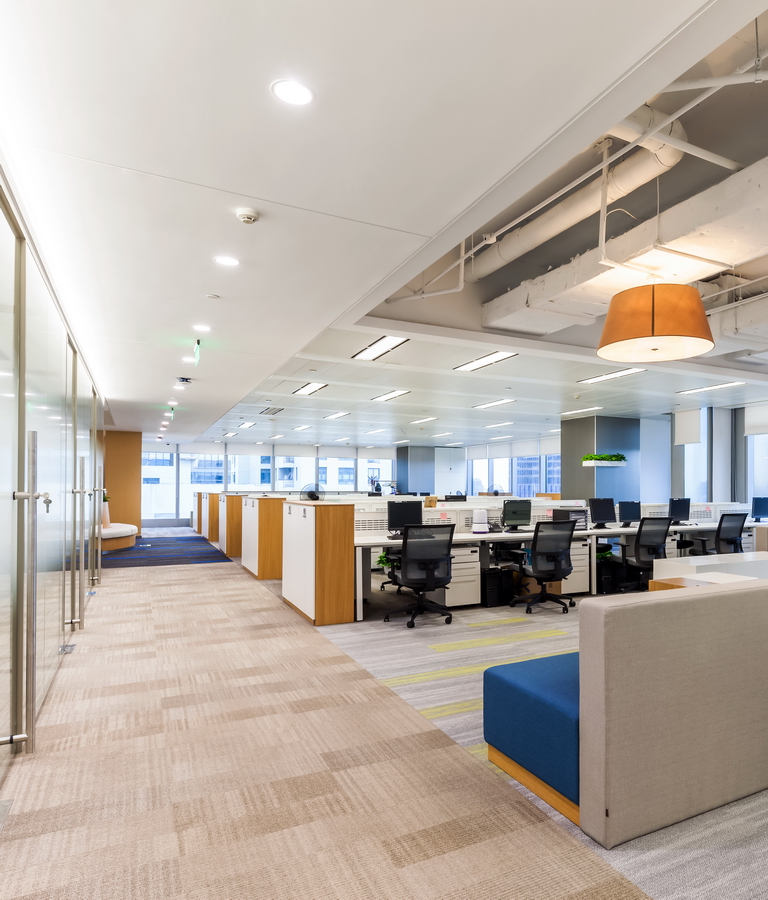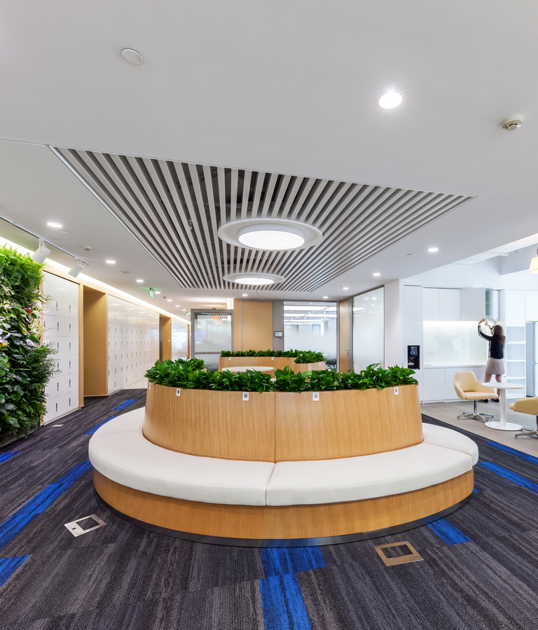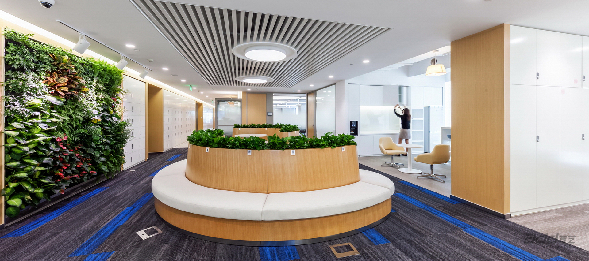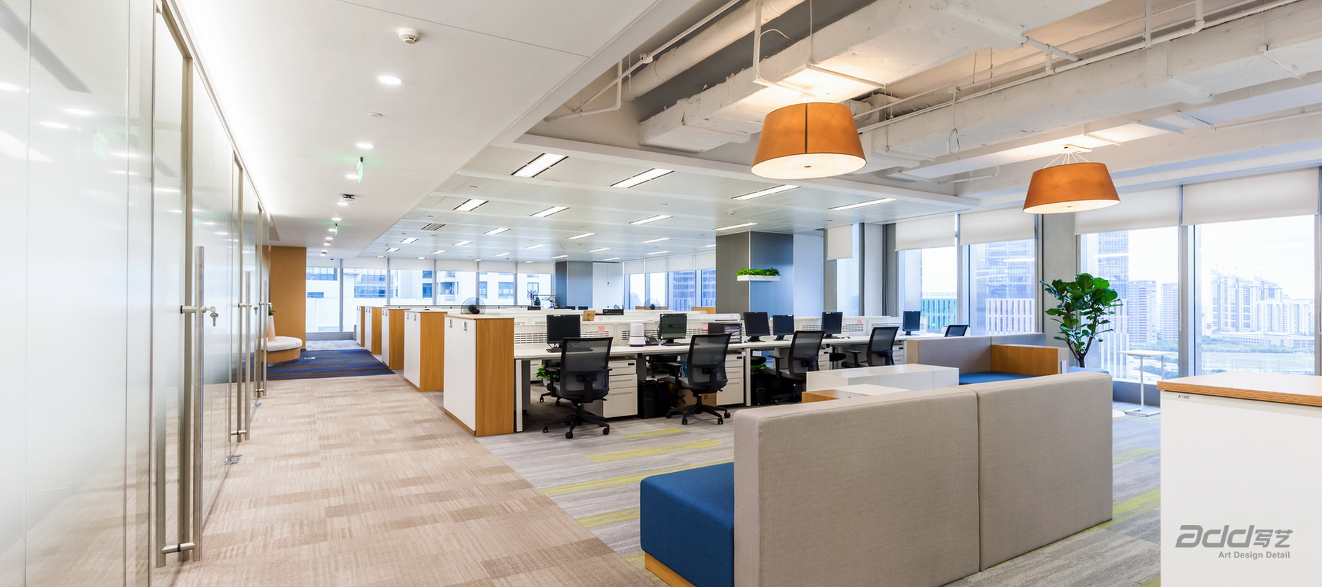 ADD寫藝在接待大廳,會議中心,以及茶水間和共享辦公處,安排了數字化的管理和設計。同時打破原來傳統的深色木飾面、奢華花色大理石設計風格,用了淺木色、白色大理石、科技感的陽極氧化鋁板和轉印鋁格柵,整體格調充滿高級感。一些工位設置共享工位,大大提高了工位的使用率。共享工位,可以設置很多的式樣:卡座、沙發、創意工位等,這樣共享工位不僅是工位,還可以是休閑討論區。會議區的模塊化設計,可移動式隔斷,充分滿足員工工作需求,進行合理分割。