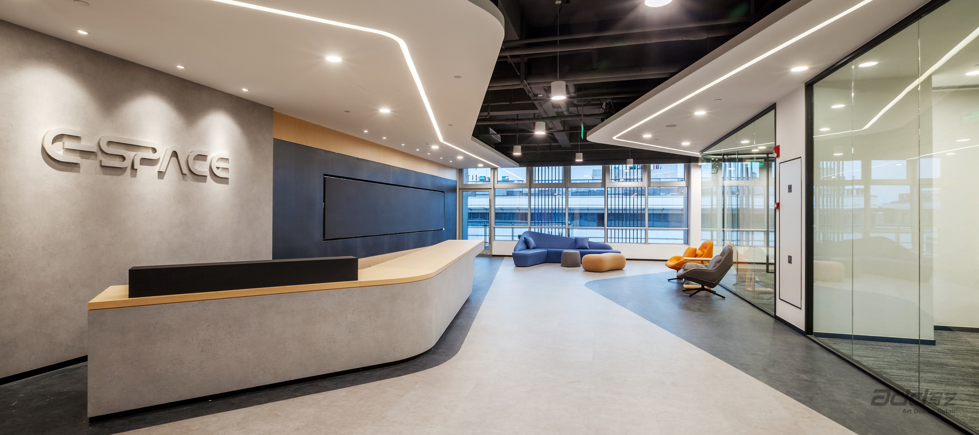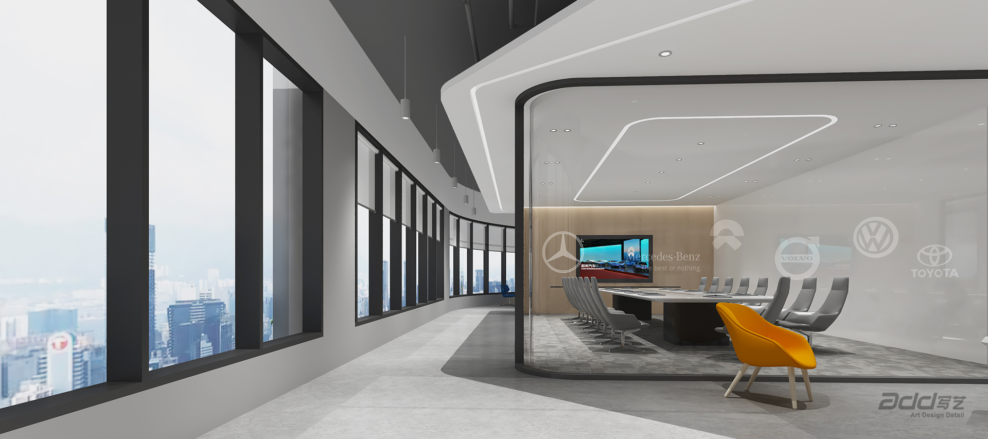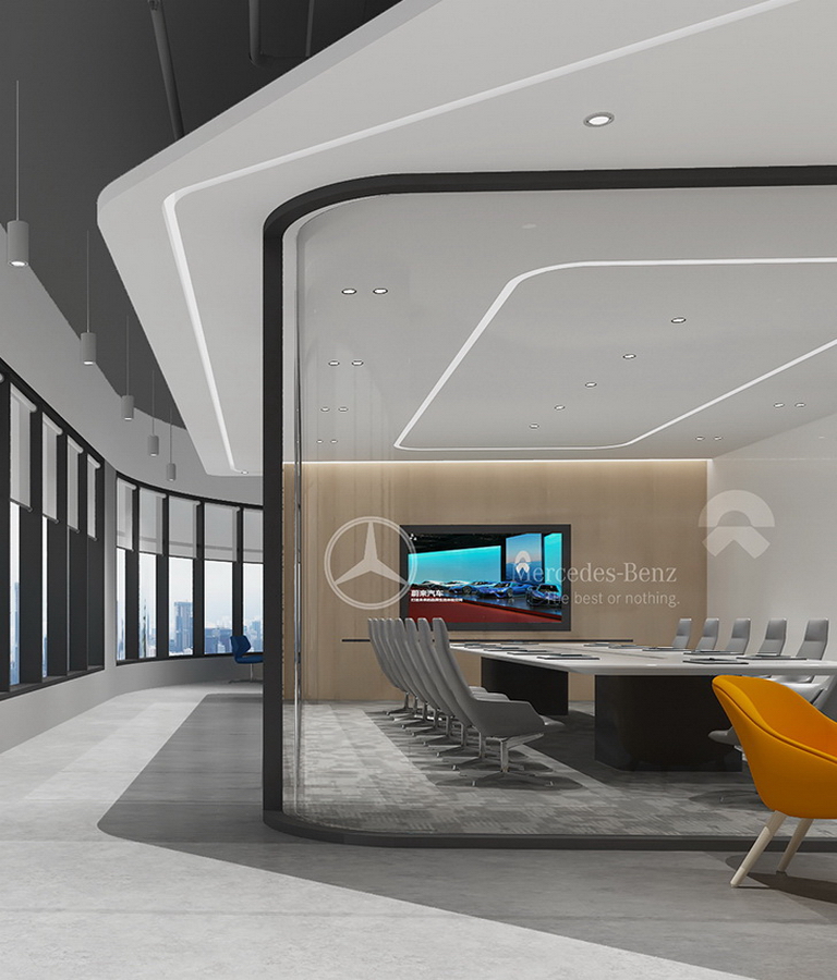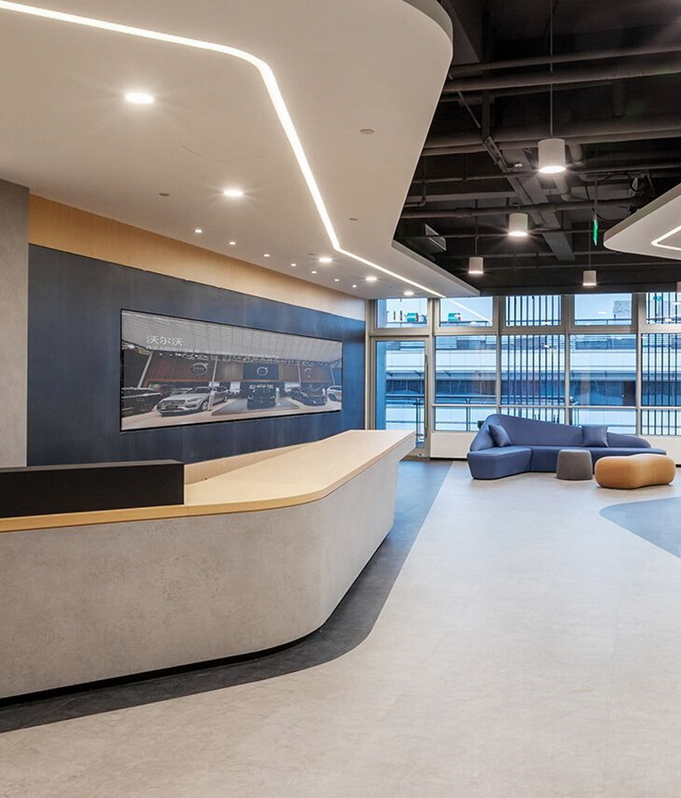 極度智慧展覽是一家專注于汽車展覽的企業,長期與國內外多個知名汽車品牌長期合作,有著數千場全國大型展覽的經驗積淀。步入空間所感受到的第一印象尤為重要。運用流暢的線條,極具力量速度感,建立獨特的視覺地標給所有員工與訪客強烈的直觀視覺體驗。引入自然光與流動的建筑語言,良好的城市視野,讓訪客與員工感受到親近氛圍。