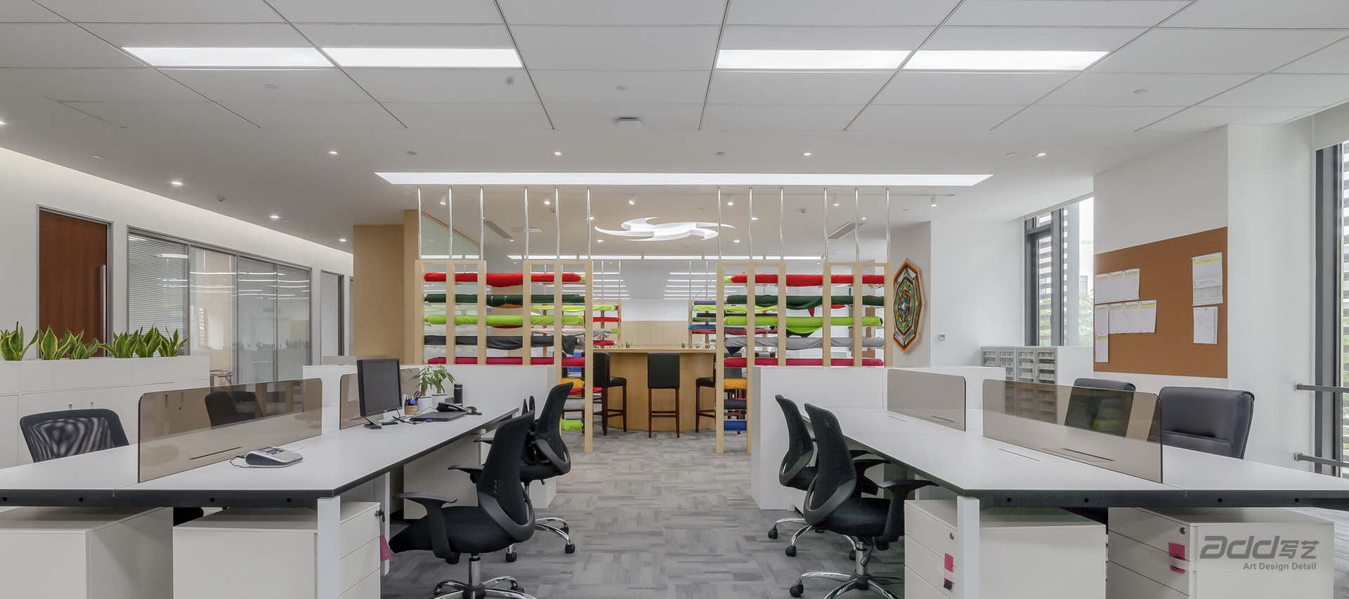 該空間的整體設計反映了聯合租賃公司的品牌標識,對訪客、新員工,甚至是老員工都產生了影響。利用與公司品牌相一致的各種主題,包括建筑參考以及用充滿活力的品牌色彩混合的原材料、混合材料和天然材料。