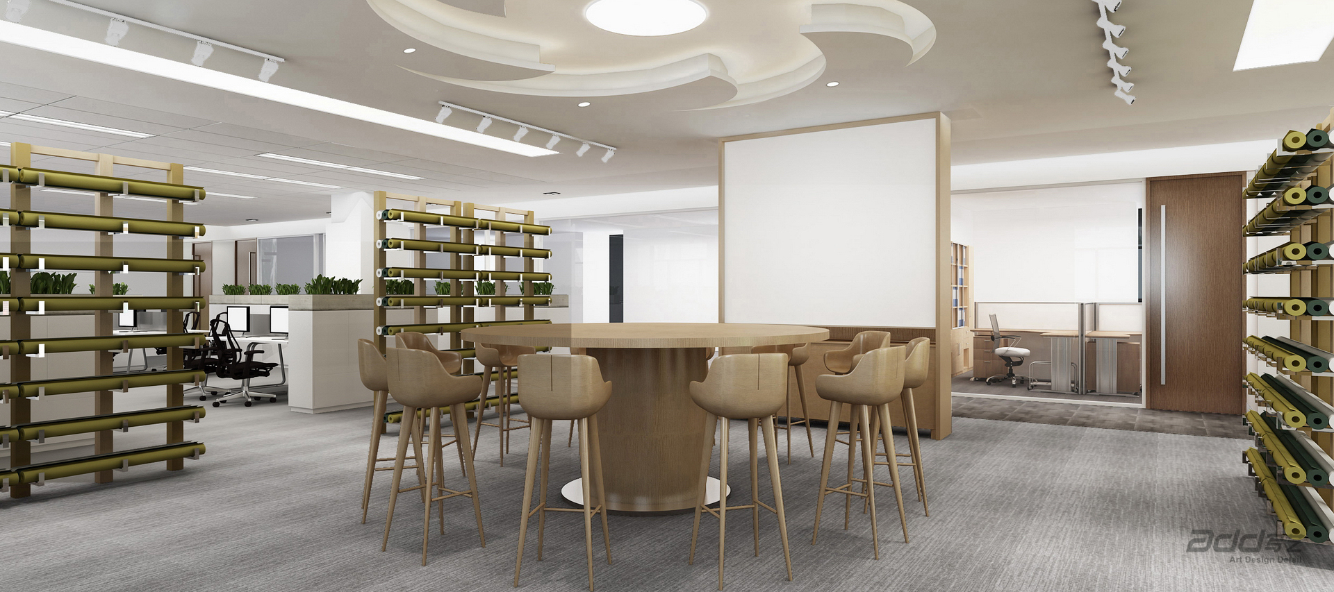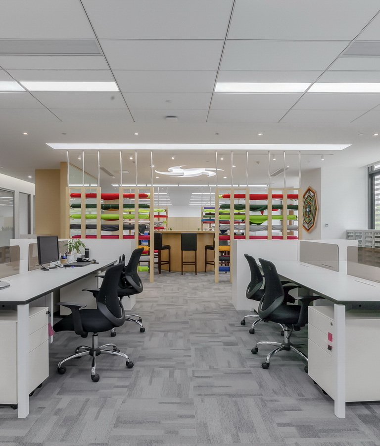 五極貿易一家專業做運動服裝的外資公司,在美國,杭州,香港都有辦事處,在坦桑尼亞,毛里求斯和馬達加斯加都有自己的成衣工廠。打造的這間充滿活力和現代感的辦公室,體現了這家紡織公司在當前時代的品牌價值,同時也為他們的支持團隊提供了完整而靈活的工作和研發空間,讓他們可以享受到在一起工作的樂趣。
