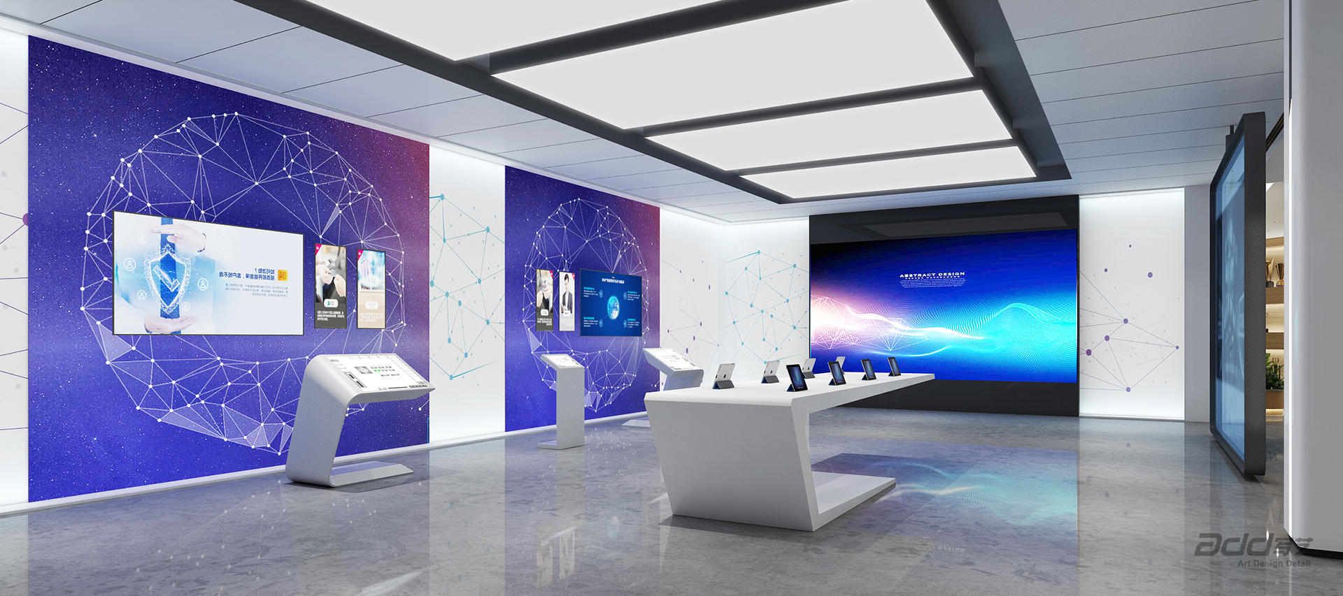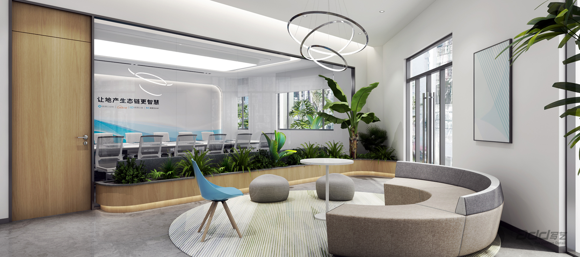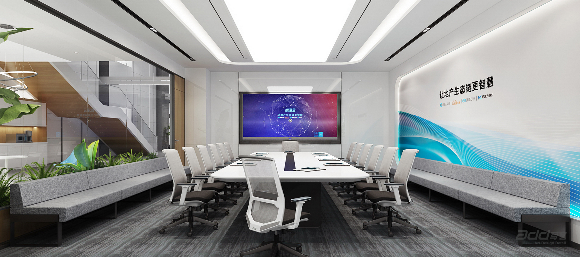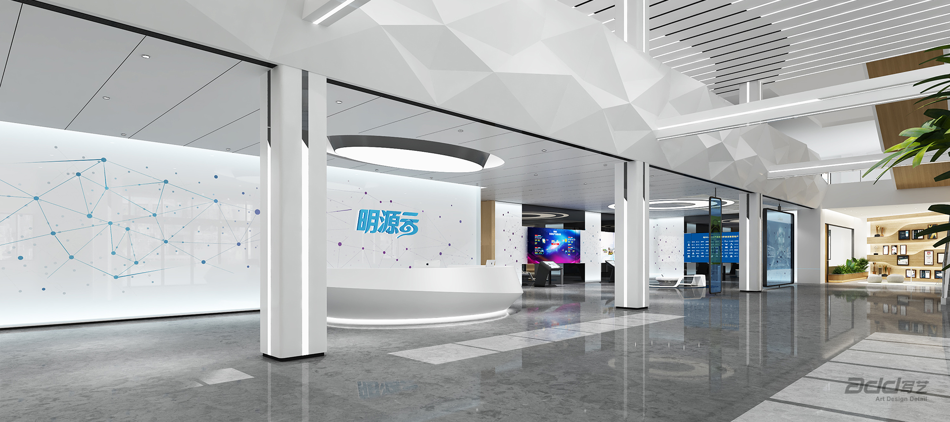 明源云,是國內(nèi)領(lǐng)先的地產(chǎn)生態(tài)鏈智能商業(yè)服務(wù)商,致力于讓地產(chǎn)生態(tài)鏈更智慧。明源云為全國超過6000家房地產(chǎn)企業(yè)提供智能商業(yè)解決方案和管理系統(tǒng),幫助開發(fā)商管理成交額6萬億/年,超過新房市場的60%。設(shè)計始于對明源云價值的精準(zhǔn)探尋,通過將代表性的元素融入空間中,淋漓盡致地呈現(xiàn)企業(yè)專注于先進(jìn)技術(shù)的品牌形象。巧妙利用空間,將展示區(qū)域與會客社交區(qū)域相結(jié)合,多維度的交互感知重塑著情景中的人際關(guān)系與社交互動。